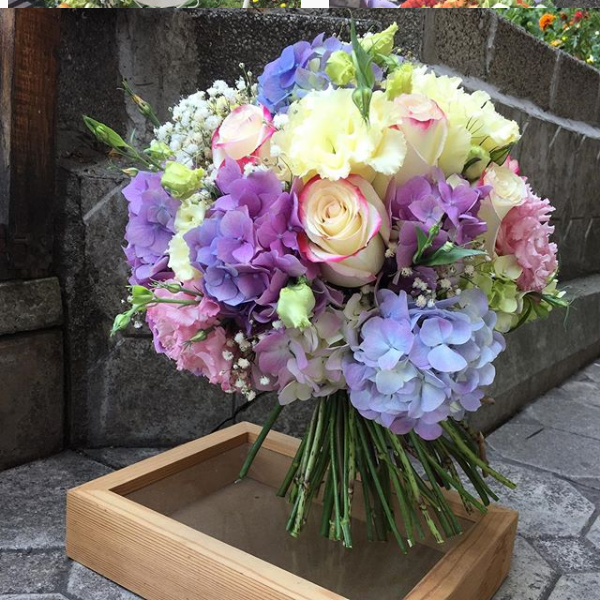 Сватбен букет – Кръгъл, падащ или полувисящ, букетът може да бъде подреден на микрофон, или спираловидно в стегната, прибрана дръжка, обвита с листа и панделка.